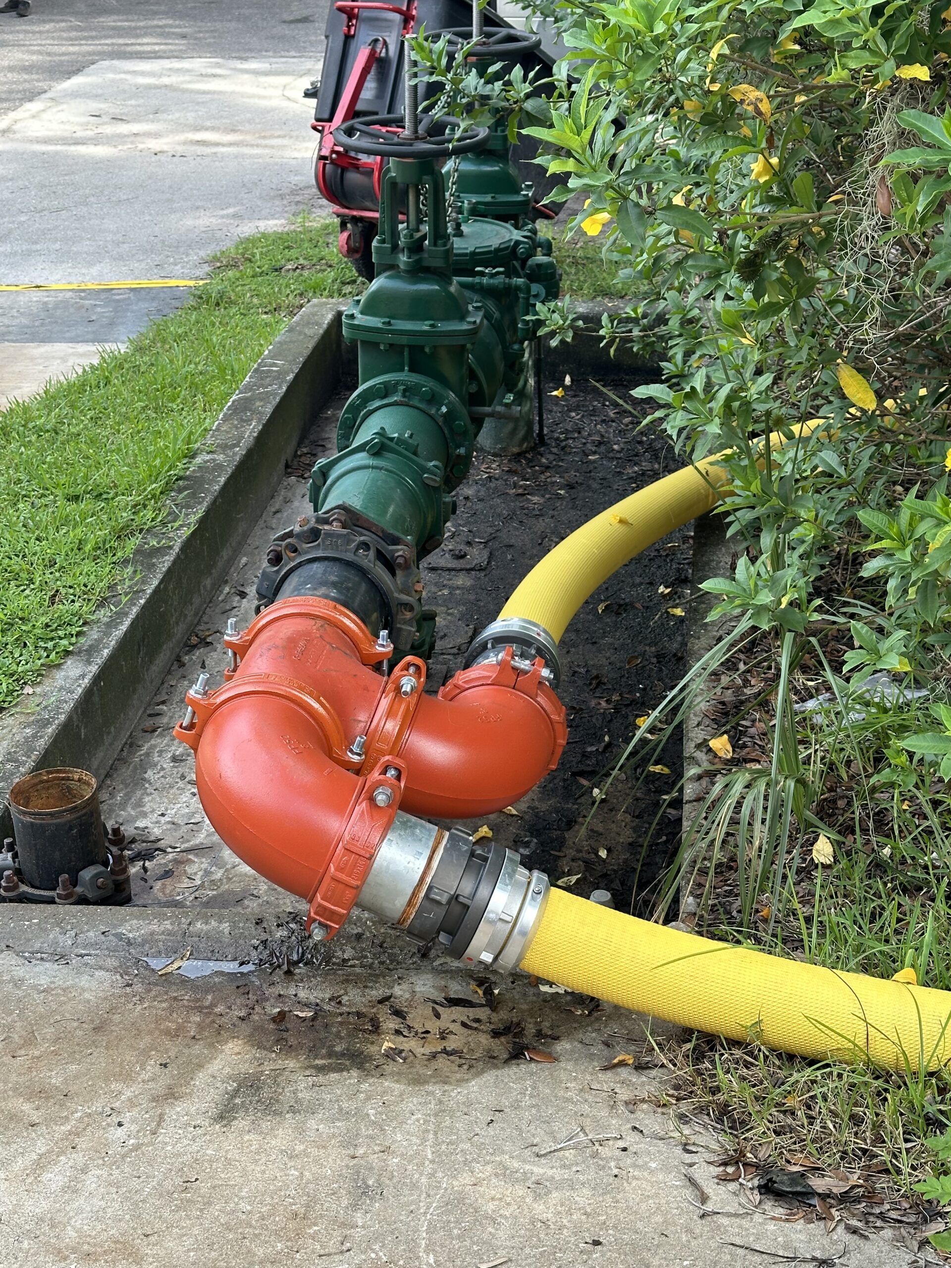 Temporary Fire Pump Specifications: Diesel-powered 2,000 GPM @ 120 PSI (providing